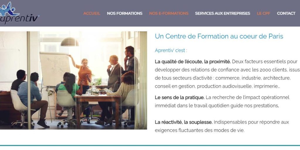 Aprentiv’Conseil et Formation : Un Centre de Formation au cœur de Paris Tâches effectuées pour le site : Refonte du site; durée de la refonte : 45 jours. Audit et Optimisation SEO. Référencement SEO, principalement du netlinking. Rédaction de contenu optimisé SEO : landings pages et articles de blog. Quelques actions de Community Management.