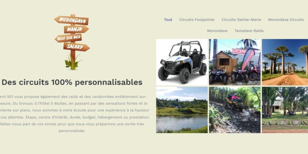 Location de quad sur mesure à Madagascar Tâches effectuées pour le site : Hébergement web; Maintenance et backup.